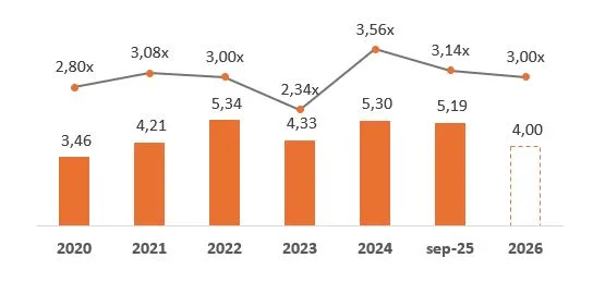 Con las iniciativas en curso, que se seguirán aplicando a la reducción del endeudamiento, esperamos alcanzar nuestra meta de deuda neta en el primer semestre de 2026, conforme al ritmo previsto de ejecución financiera y operativa.
